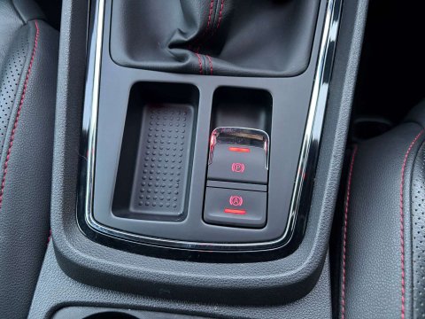 - Steering Wheel - Flat-Bottomed Perforated Leather with Red Stitching and FR Logo