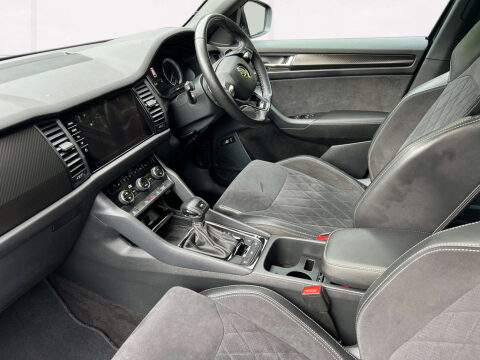 Now arrived! we have this impressively specced Kodiaq Sportline in stunning Black. This rare SUV hits that seemingly impossible sweet spot of being both nippy, comfortable and practical. Packed full of features including heated seats, heated steering wheel, Smartlink stereo with Apple car play / Android auto, Cruise Control, 20" sports alloys, parking sensors, Adaptive Front Light System, Carbon Finish Dashboard, Dual-Zone Climate Control, Electric seats with Memory function and more. With the reliable DSG gearbox which can switch between economy, drive and sports you can have the right mode for the right mood. About us: We're a 5 star rated family run dealer (look us up on Google). We offer looked after, low mileage cars. Every car comes with a clear history check, mileage verification and guarantee. Full workshop inspection and preparation by qualified technicians with a new year MOT to ensure nothing is needed for you to enjoy this car safely and reliably. No pressure sales. Never any added admin fees! Cars can be reserved for 99 (refundable) to hold until viewing or delivery. Look us up on Google for our customer reviews. You can contact one of the team by phone, email, Whatsapp or Facebook with any questions. Ask for a live video viewing if you're further away. Lovely car in great condition at a great price. We're a family run company. All cars fully inspected and guaranteed.Call now on 01414134883